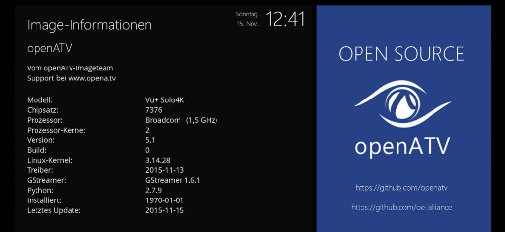 Ein erster Blick auf die OpenATV 5.1 Open Beta für die VU+ SOLO4K. Beschreibung vom ATV Team und halt nun