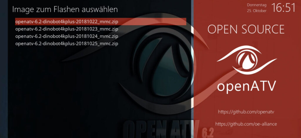 Ein erster Blick auf die OpenATV 5.1 Open Beta für die VU+ SOLO4K. Beschreibung vom ATV Team und halt nun